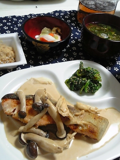 10/12☆夜ご飯 10月 12, 2006 yumi☆献立☆ ・秋鮭のソテー・きのこソース ・ほうれん草の胡麻和え ・お味噌汁 ・浅漬け — 鮭が旬で美味しかった~♪ それもソースも簡単に作れて美味しい!