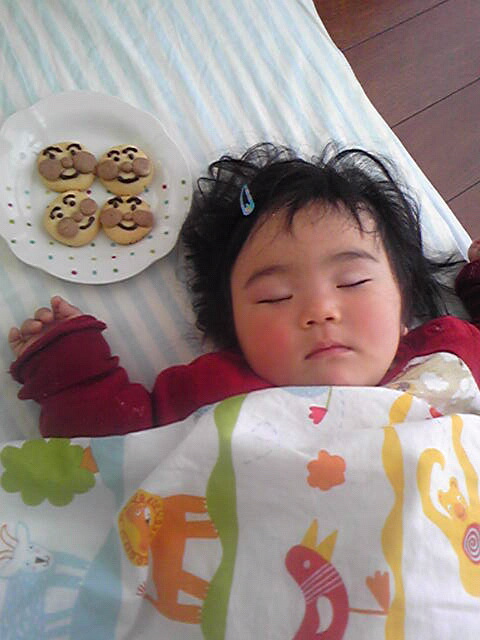 遊び疲れて、夜はケロっと寝た友菜ちゃん。今日もよく遊んだね~(^^)
