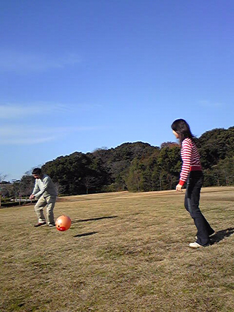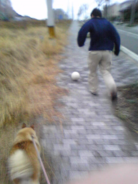 旦那さんは毎度のごとく、サッカーボールを蹴りながら