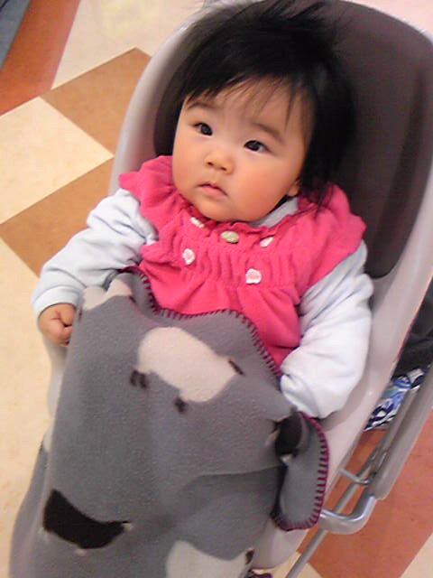 はじめは大人しくショッピングセンターのベビーカーに乗っていた友菜ちゃん(↓左)