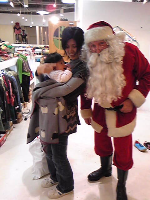 サンタさんに出くわして、友菜ちゃんを見て