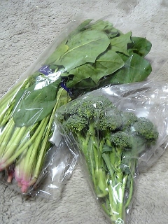 三鷹の畑で採れた完全無農薬のほうれん草とブロッコリーを