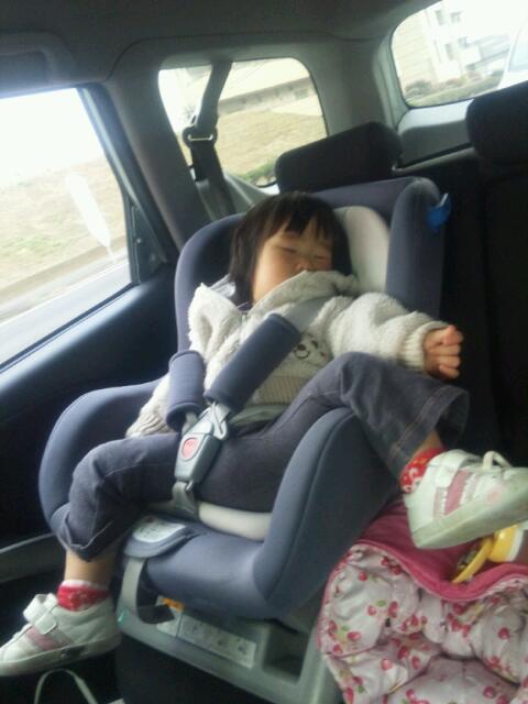 たっくさん遊んで帰りの車の中。こんな姿で爆睡の杏菜ちゃん(笑)