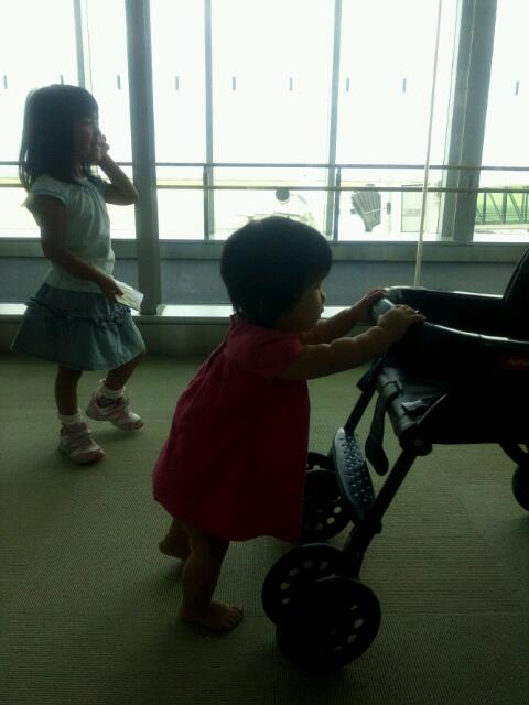 出発までの待ち時間に、二人ともロビーで遊んでたおかげで、杏菜ちゃんは飛行機で寝てくれたから、結果オーライかな(^^)v