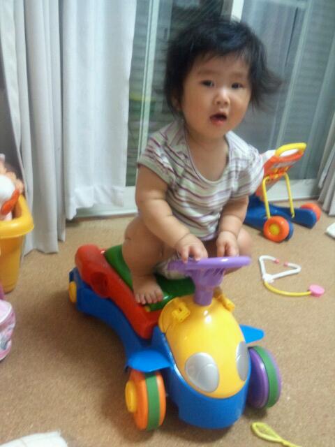 杏菜ちゃんが自分で車のおもちゃに乗っていてビックリ(笑)