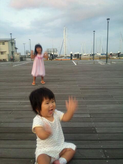 友菜ちゃんは裸足で歩くのを嫌がりますが、杏菜ちゃんは何のその!