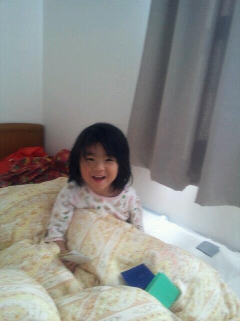 旦那さんも友菜ちゃんの反応が見たいと、同じ時刻に起きました!