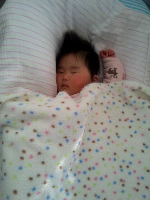 杏菜ちゃんは、ママに抱っこ紐で抱っこされ、今日も眠り姫(笑)