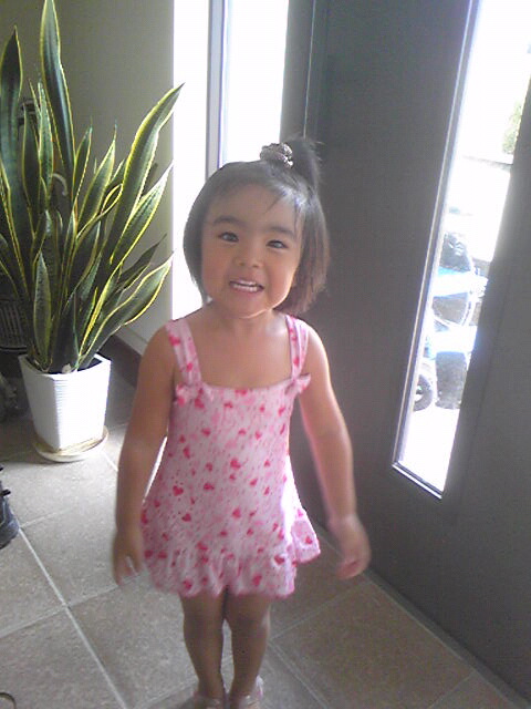 伯母ちゃんから貰ったハート柄の水着が気に入ってルンルンです(笑)