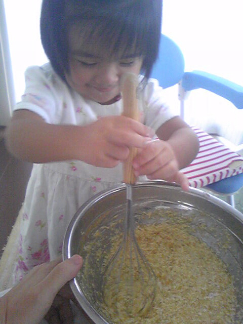 写真は、友菜ちゃんと一緒にバナナのパウンドケーキを作ったときのもの。