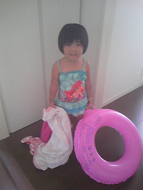 友菜ちゃんは、午前中から母と一緒にプールに行ってきました(^^)/