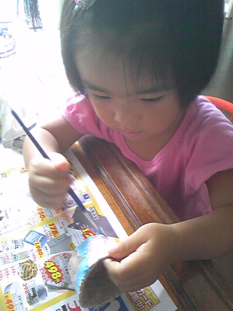粘土遊びみたいにして形を作って、乾かしてから絵の具で色付けしていきます。