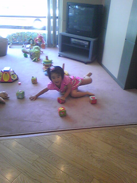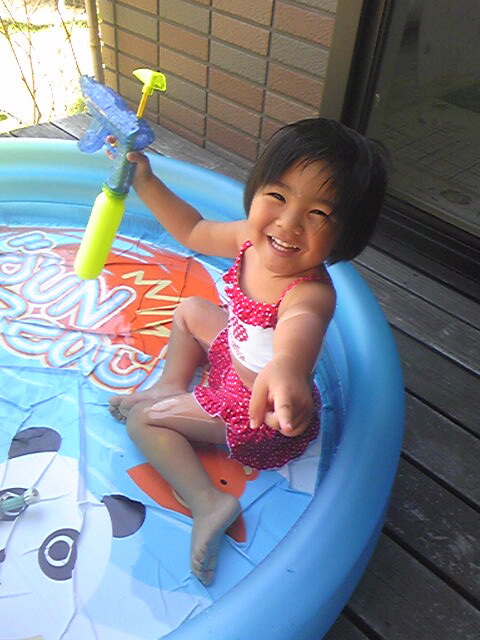 背中やら頭、お腹に水をピューピューかけると、くすぐったいみたいで、ケラケラ笑って、「もう一回」って何度も催促してました(笑)