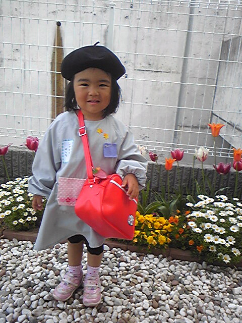 行きは、昨夜から上京した母と旦那さんと私の3人で友菜ちゃんを幼稚園まで送りました(^^)