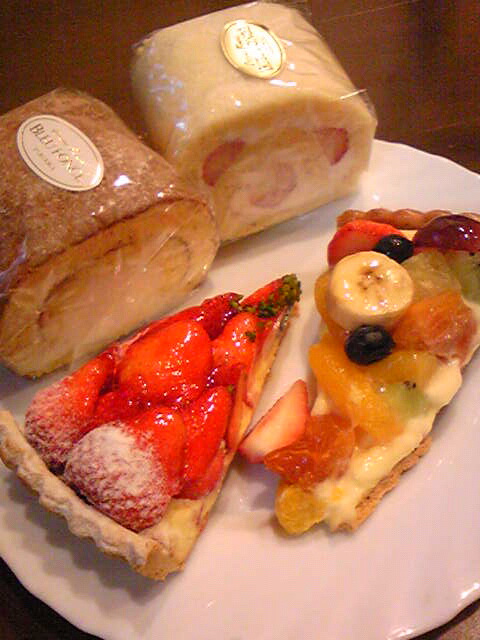 キルフェボンのタルトとブルーフォンセのロールケーキです(^^)