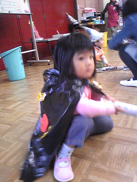 仮装は子供に好評でした♪友菜ちゃんもうちに帰ってきてからも、マント着て遊んでました(笑)