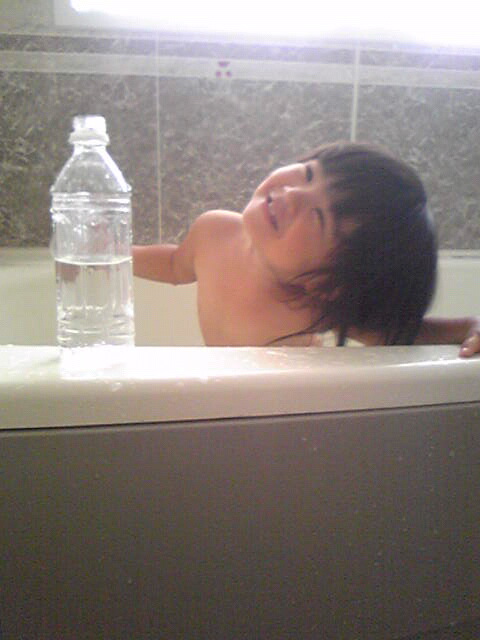 うちに帰ってきてから、お風呂で水浴びしました♪