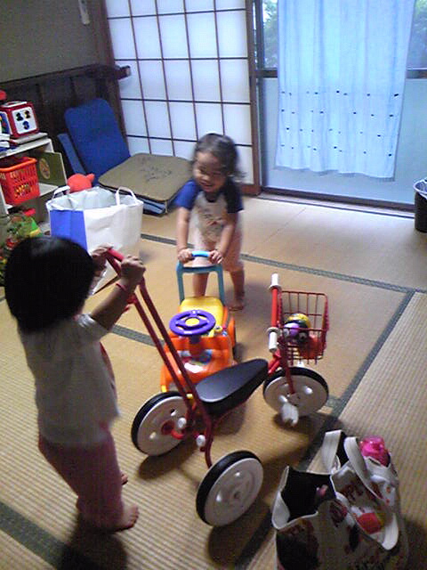 部屋には、滑り台から押し車、三輪車、色んなおもちゃがあって