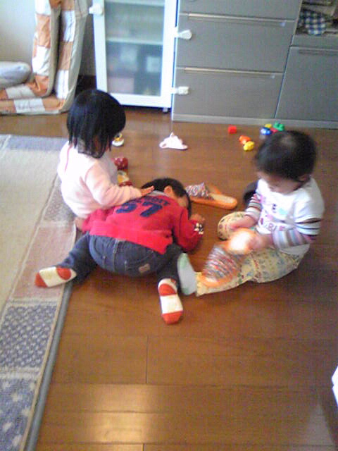 移動動物園はかなり楽しみにしていただけに残念だけど、ひさびさのおうち遊び・・ママ達はまったりモードでたっぷりおしゃべりできるからいいかも♪