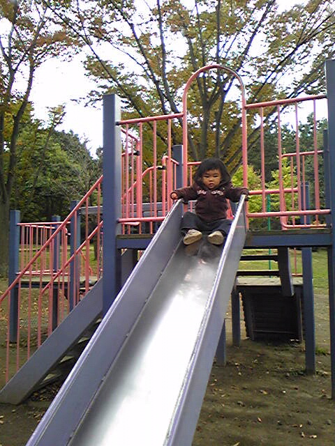 その公園がまたいい!遊具も立派で広いのに人も少なくて、紅葉が綺麗~♪